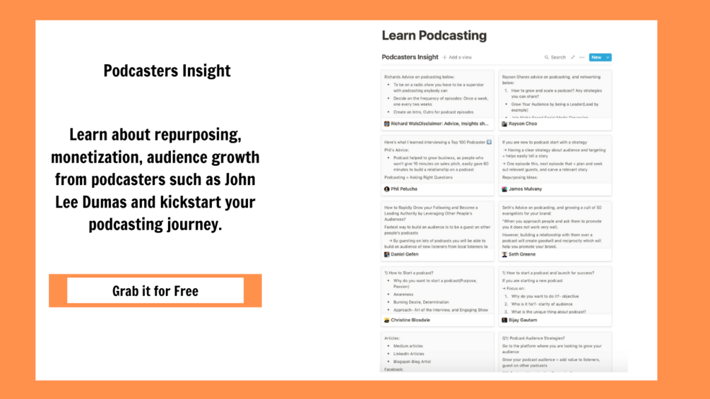 ⚡ You'll get Repurposing Ideas from 5+ podcasters, Resources, and Templates